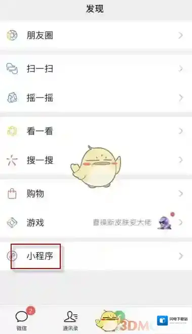 3、打开微信的发现页面,点击“小程序”;