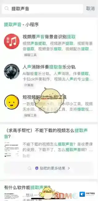 4、搜索提取声音,点击提取声音的小程序;