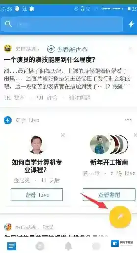 1、首先在知乎APP首页点击右下方黄色羽毛样式的按钮,如下图所示: