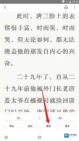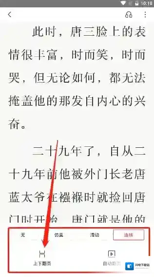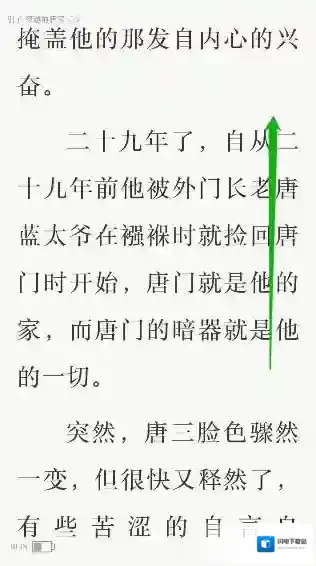 6、点击后系统就回到来小说的阅读界面,我们上下拖动就能够看见小说的翻页效果就已经变成了上下的方式了。