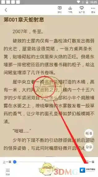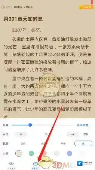 1、在小说阅读界面,点击一下屏幕,然后点击右下角“设置”。