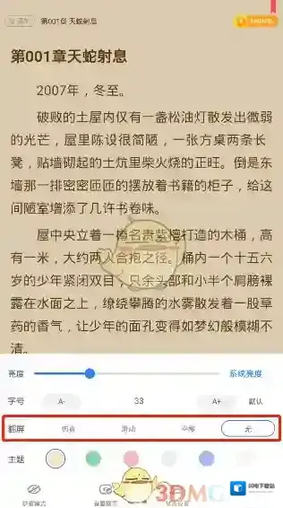 2、然后我们在第三栏中就能够看见翻屏的功能,在这里有着“仿真”(和真实的翻书效果一样)“滑动”(当前页面向左滑动)“平移”(当前页面向左滑动,下一页内容从右侧平移)“无”(没有翻页效果)等四种翻页效果,用户可以点击你喜欢的翻页效果。