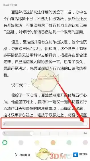 2、这时就来到了小说阅读界面,然后先点击手机屏幕中心,然后在右下角就能够找到“设置”并点击。