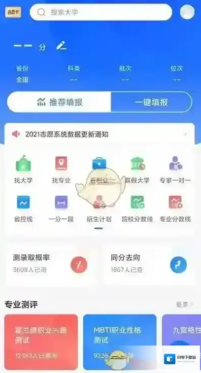 1、首先我们打开手机中的app,然后进入到首页之中,接着点击下方的“志愿”选项。