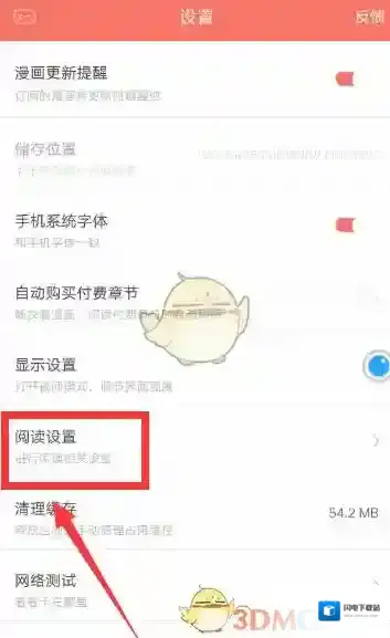 2、当我们进入到软件设置的页面之后,从列表中选择“阅读设置”功能。