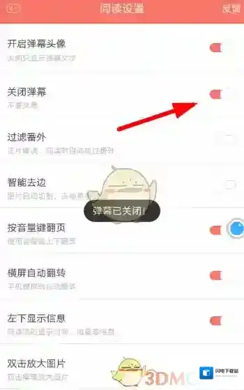 3、在阅读设置页面的上方,用户就能够直接管理弹幕与弹幕头像的开启或关闭了。