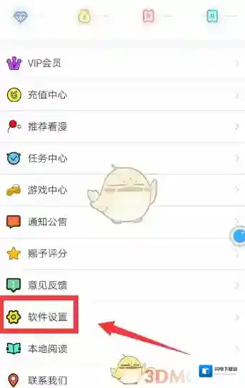 1、打开看漫画app后,在我的界面点击“软件设置”功能。
