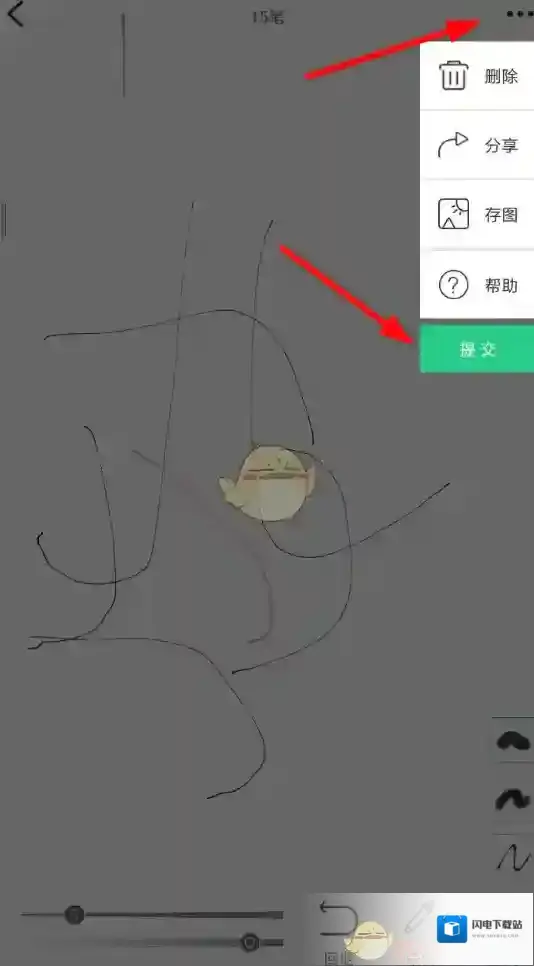 2、接下来在作品编辑页面的右上角点击“…”按钮,从列表里面选择“提交”功能,就可以尝试上传当前作品。