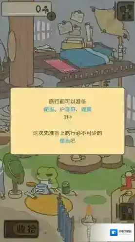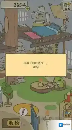 然后我们点击右下角的“房子”返回房间里,在房间里点击左下角的“收拾”按钮,开始为青蛙准备旅行的行李。