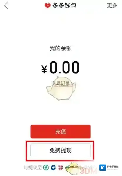 2、进入多多钱包账户后,点击“免费提现”(仅能提现至银行卡)