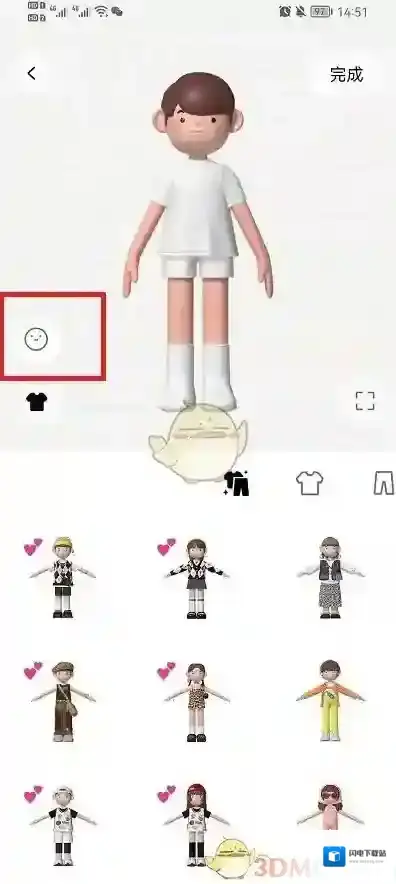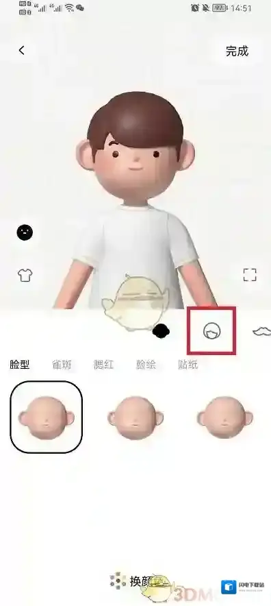 4、在换造型的页面中,点击下方的小人头图标,就可以进入到捏脸界面中;
