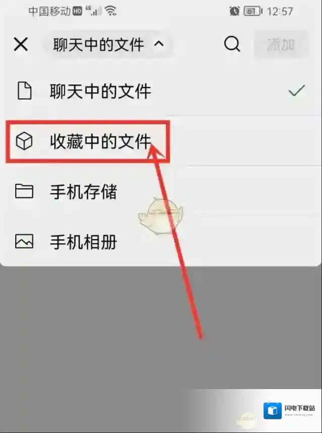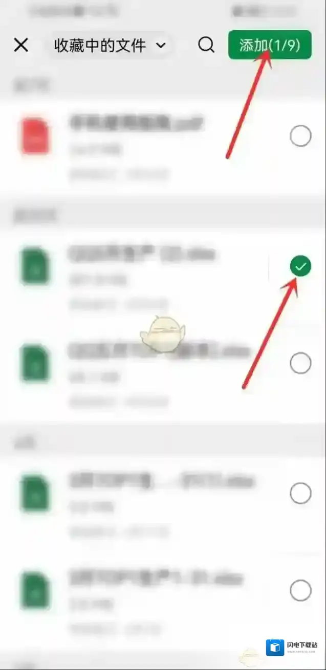 5、进入收藏的文件,勾选文件,点击右上角“添加”按钮。