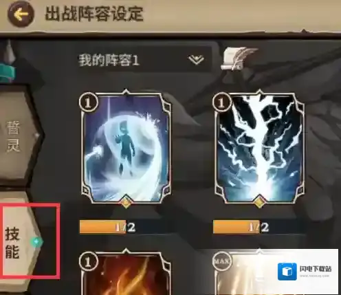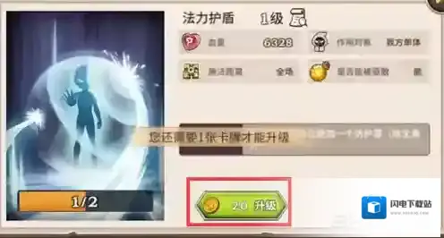 点击技能打开技能展示界面,获得升级技能所需卡牌的数量,并花费一些金币即可升级技能。