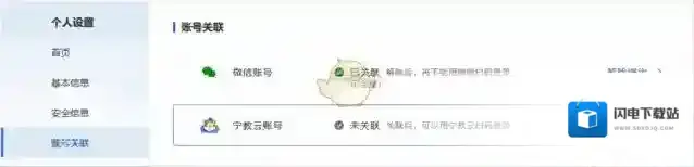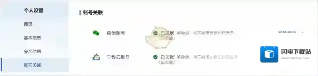 3、点击侧边栏的“账号管理”,然后点击“宁教云账号”后面的“立即关联”