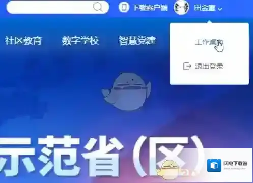 1、在浏览器中打开宁教云官网(https://yun.nxeduyun.com),登录后,点击右上角的“工作桌面”