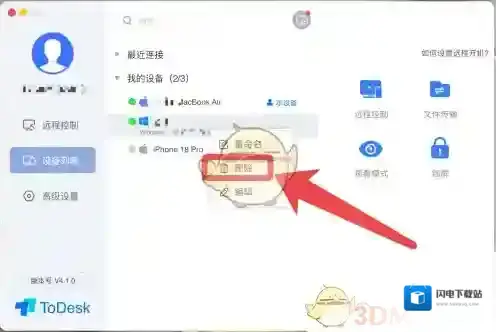 《ToDesk》删除设备方法 2025-07-27 07:09:21 编辑: 资深的父亲 分类: 应用教程 • 阅读: 1032 2、然后找到要删除的设备,鼠标右键点击。 3、最后就会弹出列表,我们点击删除即可。 本文内容来源于互联网,如有侵权请联系删除。 todesk应用相关内容 全部 todesk删除 todesk列表 todesk就会 todesk todesk点击 todesk设备 《todesk》访问被拒绝解决办法 1、打开todesk,点击如图的远程控制。 2、找到允许远程本设备,当前为关闭,点击开启。 3、点击确认。 4、完成上述操作即可连接。 本文内容来源于互联网,如有侵权请联系删除。 2025-08-04 发表回复 请登录后评论... 登录后才能评论 评论列表 ( 0条)