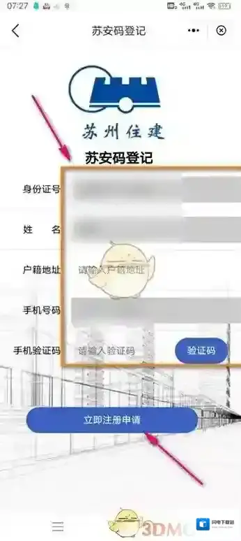 5、输入框内输入个人详细信息以及手机号和验证码,点击下方蓝色注册申请按钮即可。
