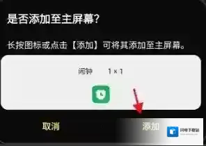 5、弹出窗口,点击右下角的添加,完成闹铃添加至主屏幕设置。