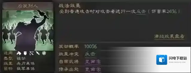 后发制人是由皇甫嵩传承而来,战法可以给自身施加反击状态,在受到普通攻击后会对攻击者进行一次反击。配备守而必固可以稳定的在前4回合反击敌军主将。