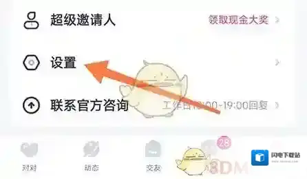1、首先打开对对APP,通过底部菜单栏进入个人中心,点击设置选项;