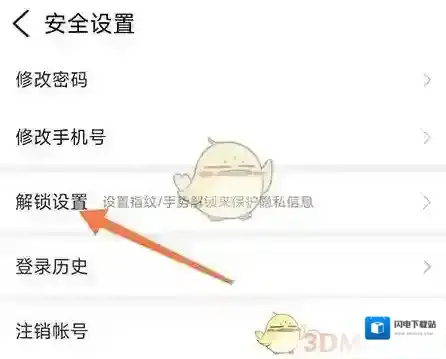 2、进入安全设置页面,点击其中的解锁设置选项;