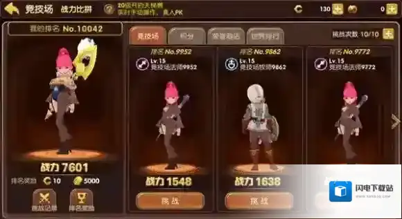 挑战时直接选择战斗力比自己低的玩家,点击挑战按钮后会自动进入比试场面,不需要玩家操控,战斗力高的玩家会直接获得胜利。每天可以免费挑战10次竞技场,打完10次之后能够通过购买增加挑战的次数。