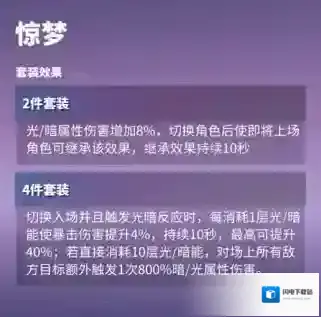 推荐理由惊梦4:本次新版本新增的魂珠套装,2件套可以提升8%光暗伤害,切换角色后相当于可以使当前在场角色获得10秒的8%伤害提升效果,在光暗队伍触发频率非常高;4件套最多可以提升40%的暴击伤害,触发满层光暗反应的时候还可以造成800%的伤害,在需要频繁切换角色的光暗队伍中,及时只有10秒的时间利用率也是非常高的。整体来说新的魂珠套装惊梦是为光暗队伍定制的专属魂珠,大量提升伤害花练2:花练的2件套效果可以提升普攻伤害,唐三的核心技能气刃斩可以吃到这个加成,同时释放气刃斩需要蓄力攻击,使得唐三能很好触发2件套效果;至于4件套效果是提升蓄力攻击的伤害,唐三的蓄力攻击并非主要输出技能,所以在选择4件套时不会考虑花练。新的魂珠可以为唐三提供海量的伤害加成,加上此前一直被忽略的花练可以很方便得被唐三触发,如果缺少暴击率还可以考虑星轨等套装,根据实际情况进行选择。