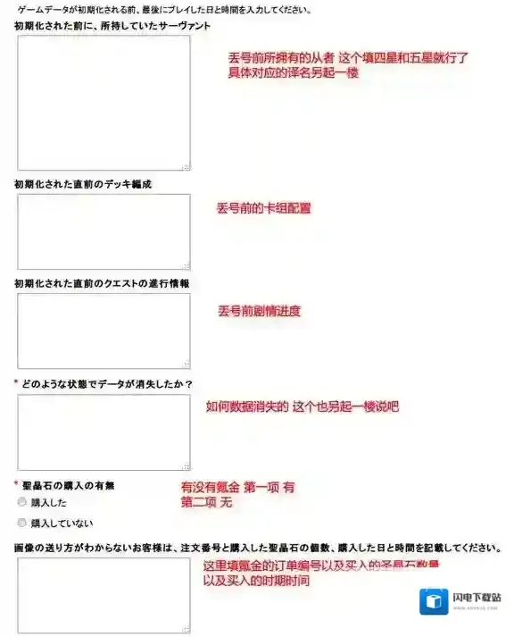 下面是问卷的翻译,其中氪金记录、UID和英灵是几个重要信息