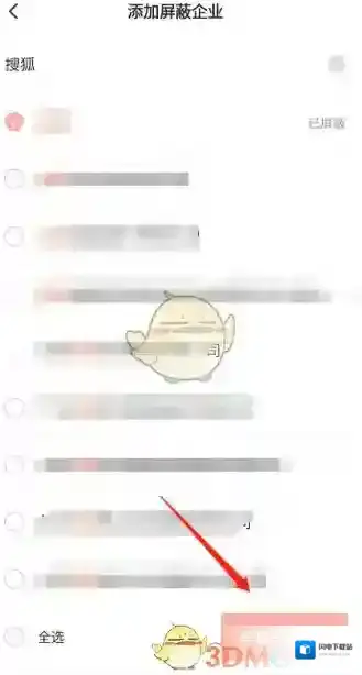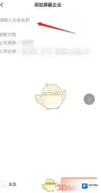 3、点击底部的添加屏蔽企业,然后搜索想要屏蔽的企业。要按照给出的搜索示例进行检索