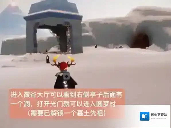 1、首先去霞谷右侧圆梦村,滑下隧道。