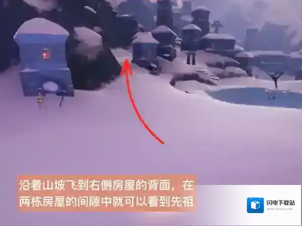 3、滑冰雕塑左侧爬上山坡即可找到先祖。