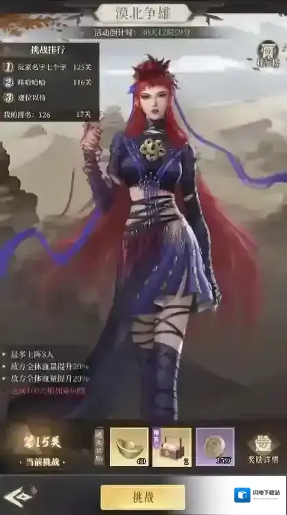 3、试炼关闭后,系统将根据玩家的通关层数排名进行奖励结算,少侠们可以获得大量元宝、侠客觉醒石。