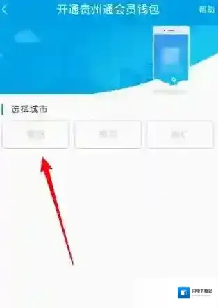 3、在开通贵州通会员钱包界面,选择城市(如:贵阳)。