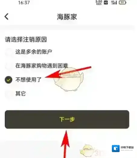 5、进入“选择注销原因”界面,选择完注销原因后,点击“下一步”按钮。