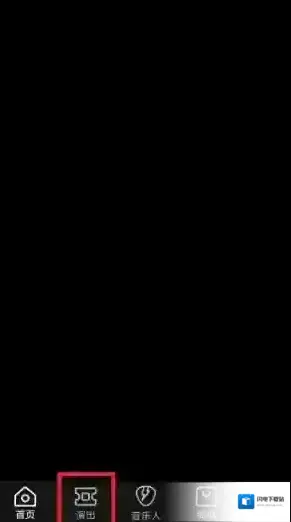1、进入正在现场app首页,点击演出,如图红色文本框: