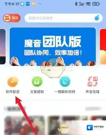 1、打开魔音工坊app,点击主页中的”软件配音“;