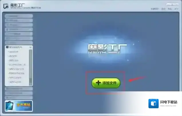1、安装好魔影工厂之后(绿色版不需要安装),然后在其界面点击“添加文件”并把想要转换格式的视频添加进来;