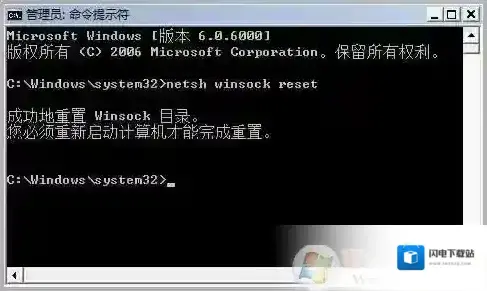二:在调出的“命令提示符”窗口中输入双引号内红字内容“netsh winsock reset catalog”(如果提示WinSock目录已重置成功的话,直接重启电脑就行了)。
