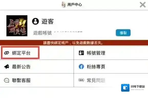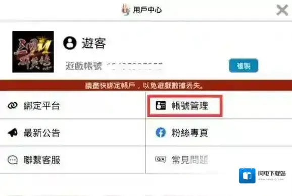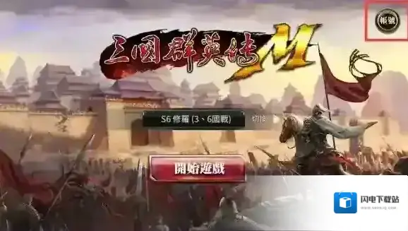 那么我们同样在启动三国群英传M,于游戏尚未登入伺服器前点击右上「帐号」图示,叫出用户中心。
