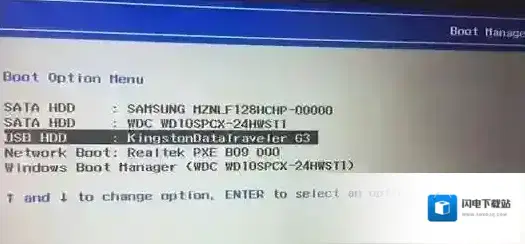 7、插入制作好的U盘启动盘,重启按F12或FN+F12调出启动管理对话框,选择USB HDD识别到U盘启动进入PE,回车进入PE: