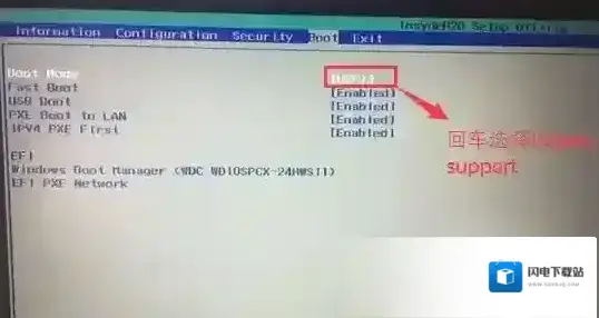 4、切换到Boot,把Boot Mode从UEFI改成Legacy Support;