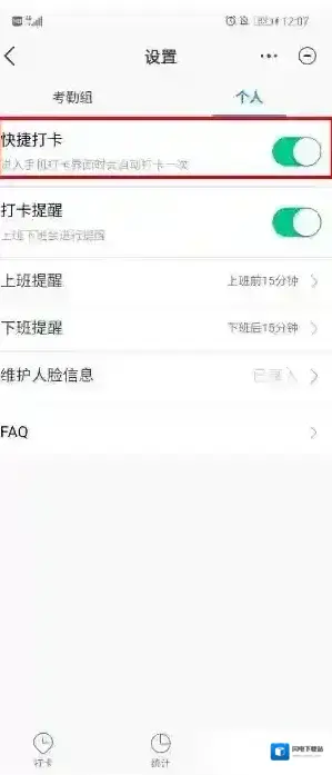 2、开启后,在设置的上班打卡时间之前只要进入打卡页面,就会自动打卡,开始上班之后就不会启动快捷打卡了。