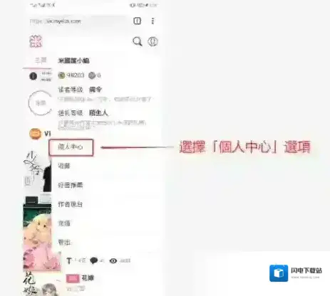 2、紧接着在出现的下拉弹窗中,选择下图的个人中心选项。
