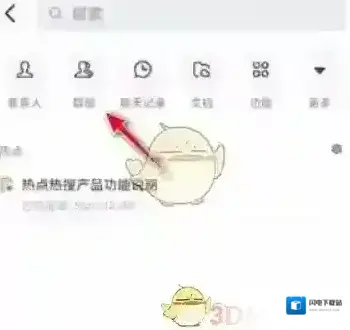 2、在搜索框下方会出现很多选项,在这些选项中找到“群组”选项,点击它就可以了。