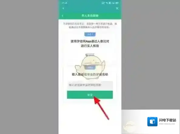 3、在本人身份核验界面,完成身份验证,以学校名称为例,输入校名,单击验证。
