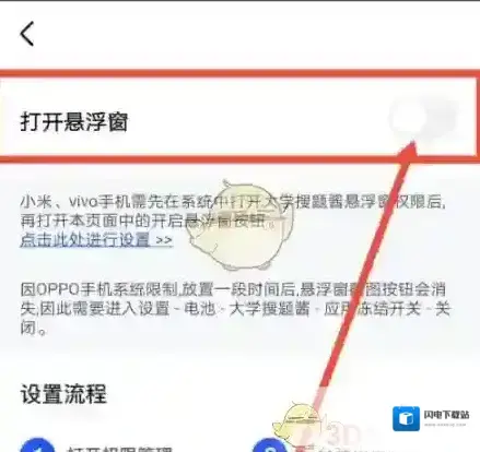 2、不过,虽然无法直接调整悬浮窗的透明度,但用户可以通过开启或关闭悬浮窗功能来满足自己的使用需求。如需使用悬浮窗搜题,只需确保已经授予大学搜题酱悬浮窗权限,并在需要时点击悬浮窗按钮即可。系统将会自动截屏并识别题目,然后提供答案和解析。