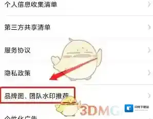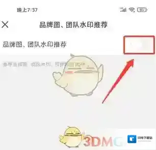 4、进入品牌图、团队水印推荐,点击品牌图、团队水印推荐右侧按钮关闭。