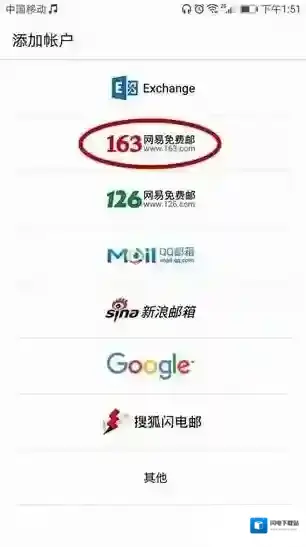 点开“华为电子邮件”软件,打开内部我们可以看到这款软件支持多家的邮件运营服务商。今天我们以163邮件为例。