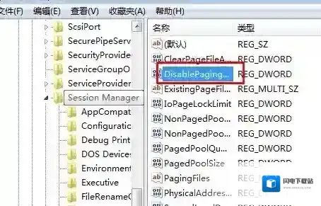 2、我们在注册表编辑器中依次找到如下注册键值:[HKEY_LOCAL_MACHINESYSTEMCurrentControlSetControlSessionManagerMemoryManagement]”DisablePagingExecutive”=dword:00000001″LargeSystemCache”=dword:00000001