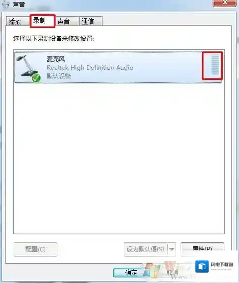 2、再录音设备中看右边的小框,当你说话时话筒就会往上波动,说明麦克风时有效的